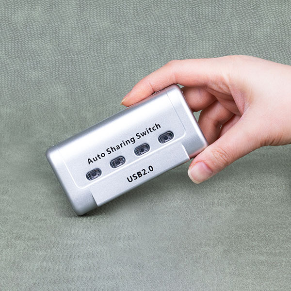 از این سوئیچ برای اشتراک یک وسیله با درگاه USB نظیر پرینتر بین چهار سیستم استفاده می شود با این دستگاه می توان روی هر یک از سیستم ها هم به صورت دستی و هم به صورت اتوماتیک سوییچ کرد . انرژی مورد نیاز این دستگاه بدون نیاز به آداپتور یا منبع برق جداگانه از طریق پورت USB تامین می شود. این دستگاه دارای چهار عدد پورت مادگی USB 2.0 نوع B جهت اتصال به کامپیوتر و یک عدد پورت مادگی USB 2.0 نوع A جهت اتصال به پرینتر، می باشد.